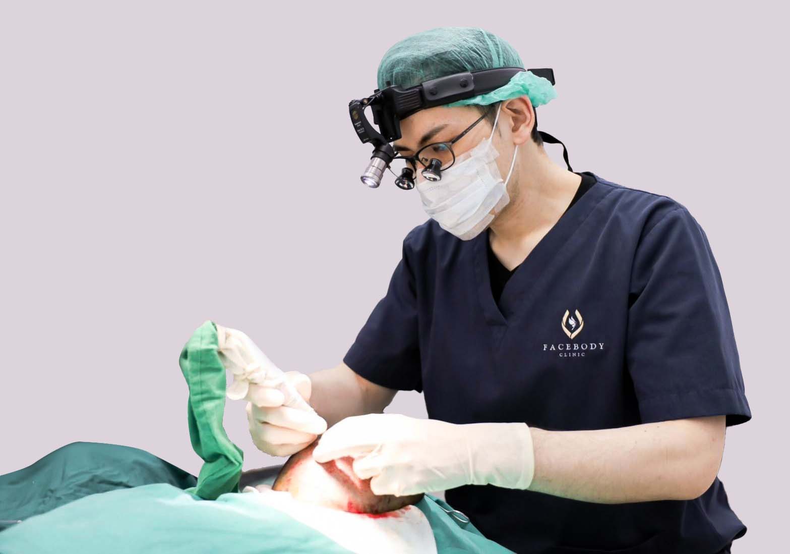 12. แพทย์และทีมจะทำการเจาะรู และนำเซลล์รากผมใส่ลงในรูที่เจาะเตรียมไว้ ปลูกผมถาวร TIDY จนครบ