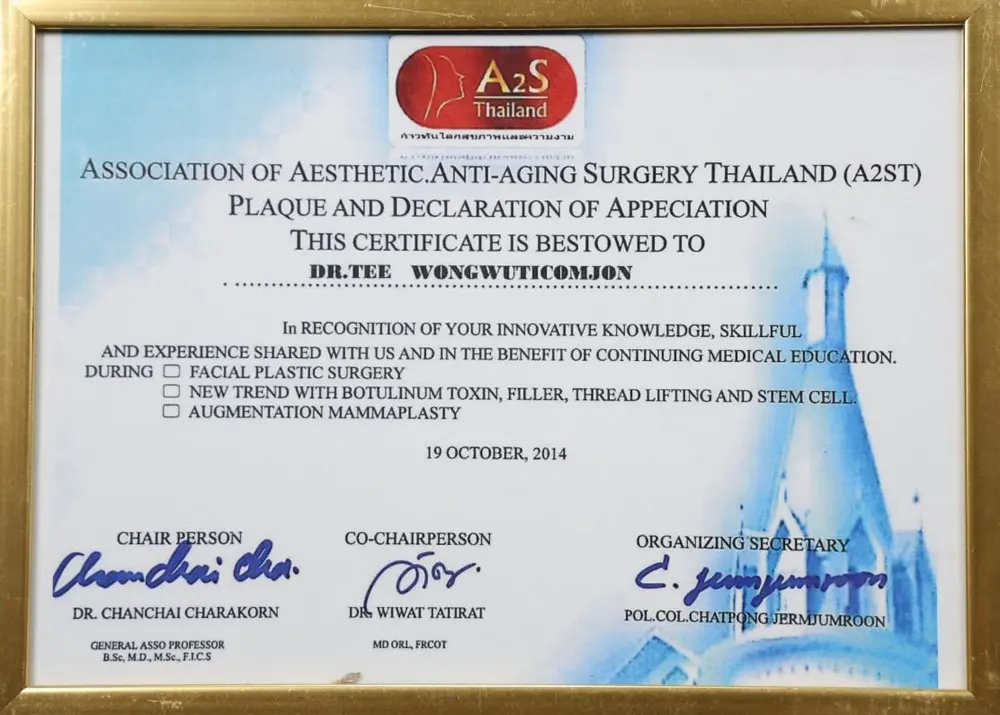 - หลักสูตรศัลยกรรมความงามใบหน้า สมาคมศัลยกรรมและเวชศาสตร์เสริมสวยประเทศไทย