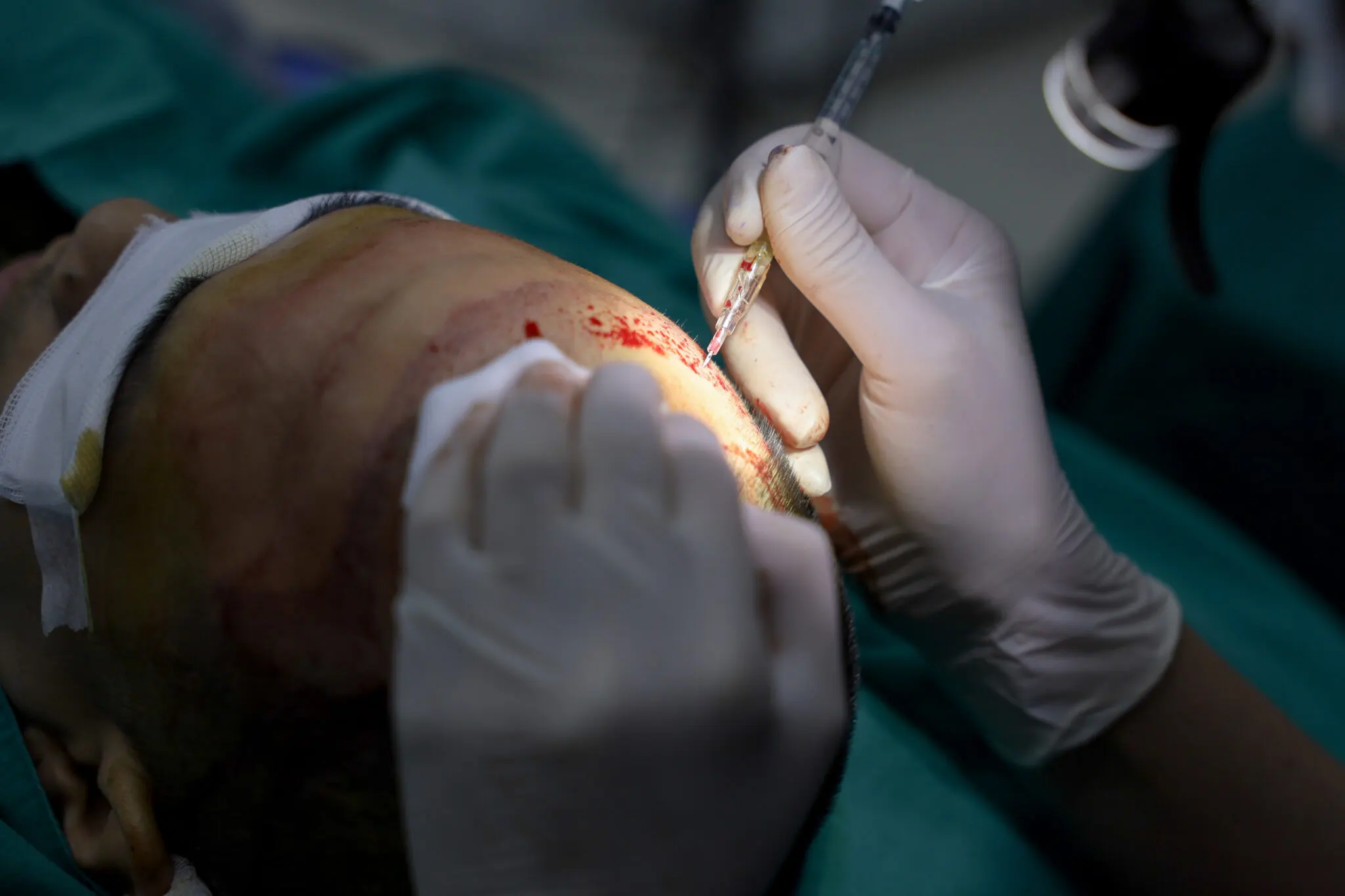 - แพทย์ทำการโกนผม บริเวณที่ต้องการเก็บเกี่ยวเซลล์รากผม