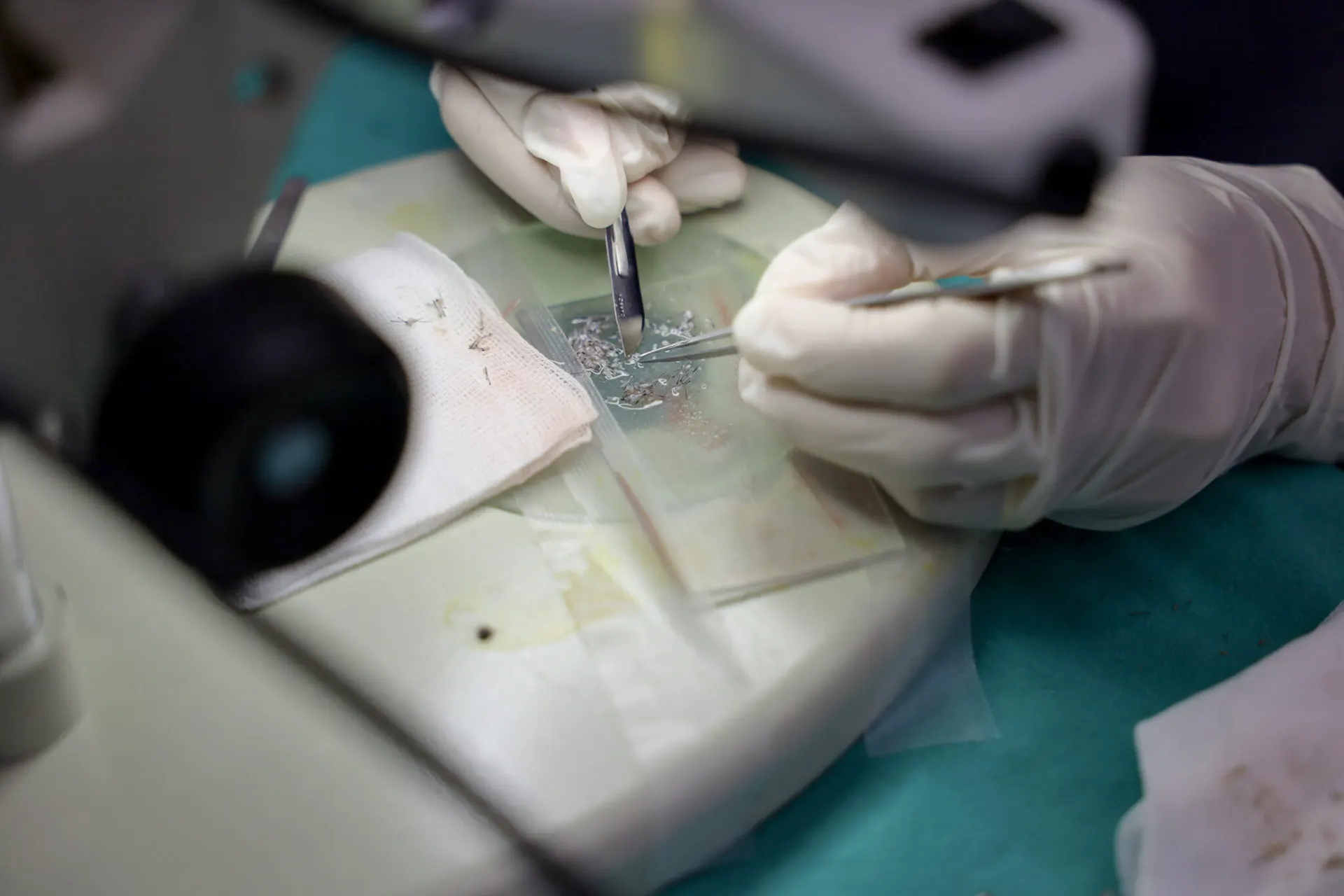 - ทำการคัดแยกเซลล์รากผมที่แข็งแรงด้วยกล้อง Microscope เพื่อให้ได้เซลล์รากผมที่มีประสิทธิภาพสูงสุด