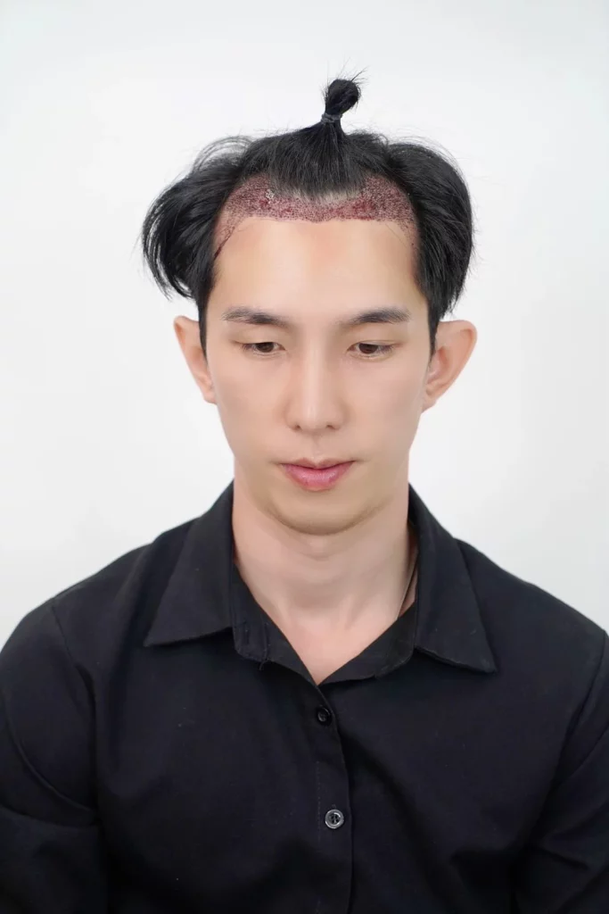 แต่หลังจากนั้นละครับ ช่วง 1-3 เดือน ผมร่วงหนักมากกกกกกก T^T ร่วงจนกลัวเลยว่ามันจะขึ้นไหม ก็เข้าไปปรึกษาคุณหมออยู่ตลอดครับ คุณหมอธีร์ก็บอกว่าให้ใจเย็นๆ ช่วงนี้จะเป็นช่วงที่ผมร่วงปกติ (ทุกคนที่ปลูกผมจะร่วงกันแล้วแต่บุคคล บางคนร่วง 10% บางคนร่วงเกือบ 90%) แต่รากผมยังอยู่ข้างในไม่ต้องกังวล ให้หมั่นดูแลผมตัวเองทานโปรตีนเยอะๆ ทานยาที่คุณหมอจัดให้ และก็เข้ามาฉายแสง ทำทรีทเมนต์ สม่ำเสมอ เพื่อบำรุงและกระตุ้นรากผมที่อยู่ข้างในหนังศรีษะ