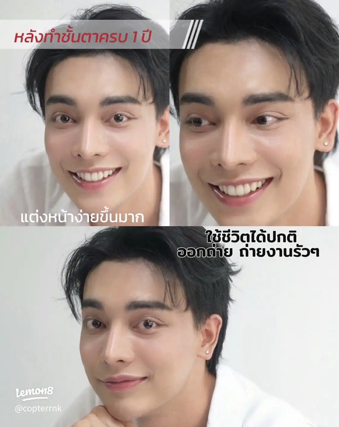 ชั้นตาของสนุ๊กตอนนี้ธรรมชาติมากและถูกใจสุดๆ ครับ ฟีดแบ็คจากเพื่อนที่เจอกันล่าสุดก็ดีมาก ทุกคนชมว่าชั้นตาสวย ดูเป็นธรรมชาติมากกว่าเดิม เพื่อนๆ หลายคนทักว่าหน้าดูสดใสขึ้น และถามว่าไปทำที่ไหนมา สนุ๊กก็บอกทุกคนเลยครับว่า แก้ไขกับคุณหมอธีร์ที่ Facebody Clinic