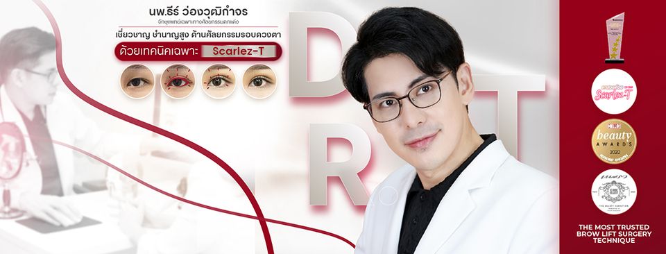 ใครที่มีปัญหาเรื่องตาหรือกำลังอยากทำศัลยกรรมตาสองชั้นเพื่อเพิ่มความสวยงาม แนะนำ Facebody Clinic คลินิกมาตรฐานที่มาพร้อมเทคนิคพิเศษ Scarlez-T เทคนิคเฉพาะของ นพ.ธีร์ ว่องวุฒิกำจร แพทย์เฉพาะทางจักษุและศัลยกรรมความงามที่มีประสบการณ์มากกว่า 10 ปี ซึ่งเทคนิคนี้สามารถแก้ไขปัญหาตาได้ทุกรูปแบบ ทั้งตาสองชั้นสายเกาหลี ตาสองชั้นสายหวาน ตาสองชั้นสายฝอ รวมทั้งสามารถแก้ปัญหาชั้นตาเล็ก รูปตาไม่เท่ากัน ตาสองชั้นหลบใน ชั้นตาไม่เท่ากัน หนังตาตก กล้ามเนื้อตาอ่อนแรง เบ้าตาลึก หัวตาแคบ หางตาสั้น และการยกคิ้วให้สูงขึ้นเพื่อปรับสัดส่วนใบหน้าให้สมดุล เรียกได้ว่าแก้ไขทุกปัญหาและสวยได้แบบที่ต้องการในที่เดียว