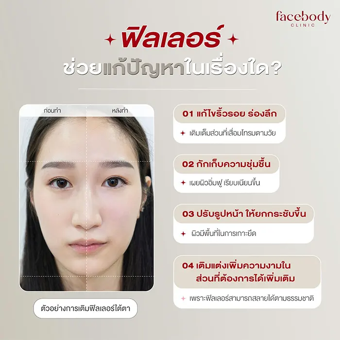 - ต้องการปรับรูปหน้า: ฟิลเลอร์สามารถช่วยปรับรูปหน้าให้ดูอิ่มฟู เรียวสวยได้