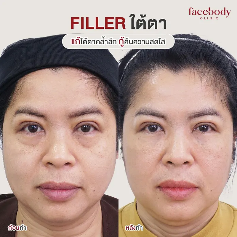 - ใต้ตาคล้ำ: ฟิลเลอร์ช่วยเติมเต็มร่องลึกใต้ตา ทำให้ดูสว่างขึ้น