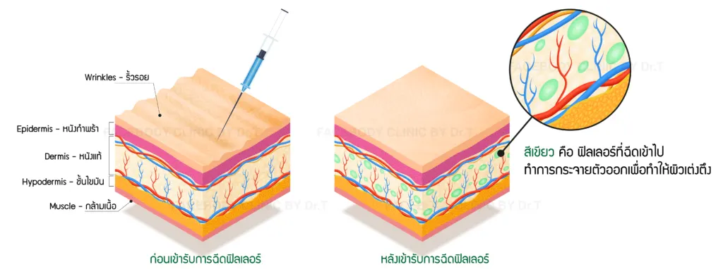 - ฉีด ฟิลเลอร์ Filler หลังจากฉีดแล้วเห็นผลทันที
