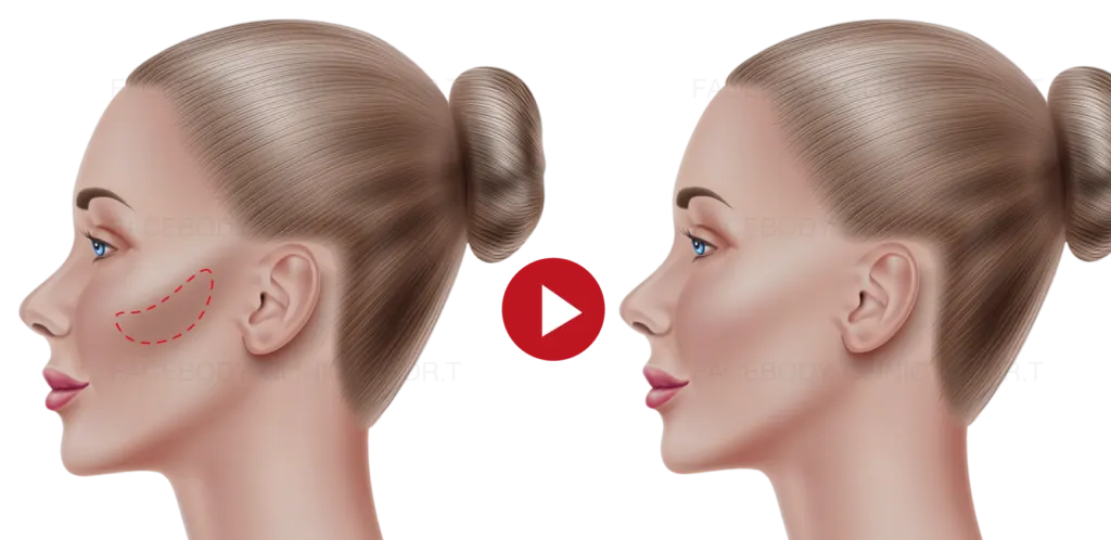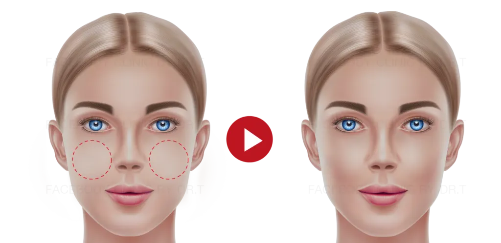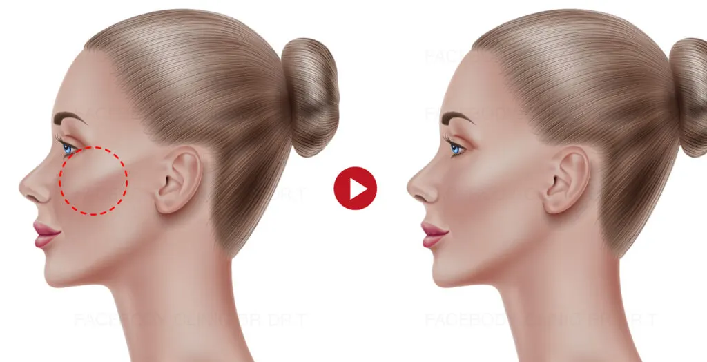- โหนกแก้มยุบ: เกิดจากอายุที่เพิ่มขึ้น การลดน้ำหนักอย่างรวดเร็ว หรือพันธุกรรม ทำให้ใบหน้าดูตอบและขาดความอ่อนเยาว์