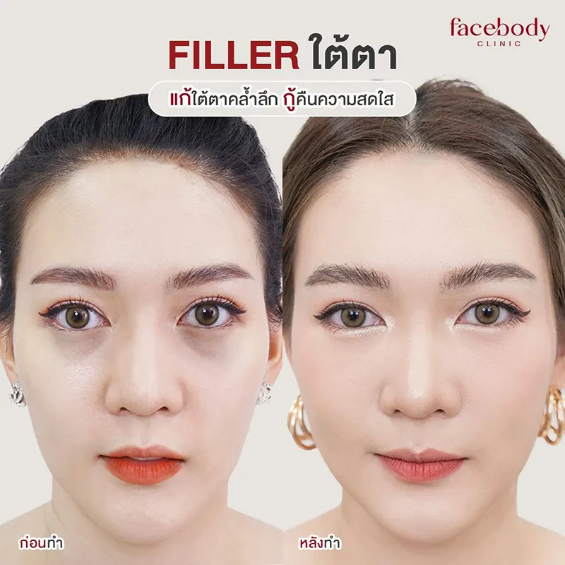 - ใต้ตาคล้ำ: ฟิลเลอร์ช่วยเติมเต็มร่องลึกใต้ตา ทำให้ดูสว่างขึ้น
