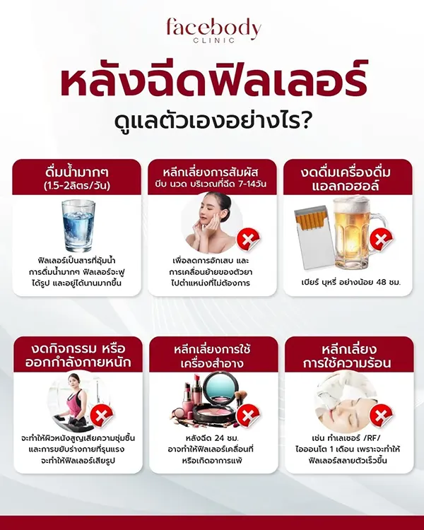 - ผู้ที่แพ้สารประกอบในฟิลเลอร์: ควรแจ้งแพทย์ให้ทราบถึงประวัติการแพ้ยา หรือสารต่างๆ ก่อนการฉีด