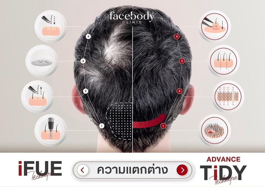 เทคนิคการปลูกผมแบบ iFUE เป็นศัลยกรรมปลูกผมด้วยการย้ายรากผมจากบริเวณท้ายทอยที่มีความแข็งแรงสูงและอัตราการหลุดร่วงน้อยที่สุด ด้วยการย้ายเซลล์รากผมทีละกราฟท์ผมด้วยอุปกรณ์พิเศษ มีแผลขนาดเล็กมาก ไม่ต้องมีแผลผ่าตัดยาว ไร้รอยเย็บแผล พักฟื้นไวกว่าเทคนิคแรก โดยทางเฟสบอดี้ คลินิก มีขั้นตอนและเทคนิคพิเศษเพื่อเพิ่มความหนาแน่นของผมที่ปลูก เพิ่มอัตราการอยู่รอดของเซลล์รากผม และแนวผมที่ขึ้นใหม่ดูเป็นธรรมชาติ