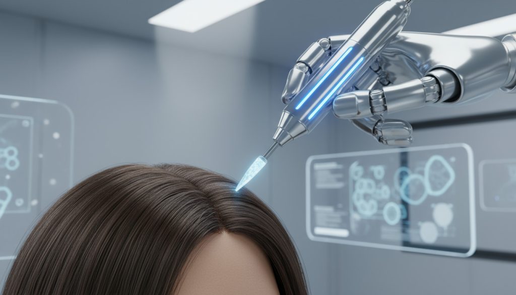 - หัวเจาะแบบพิเศษ (Trumpet Punch): ในอนาคต หัวเจาะ FUE จะถูกออกแบบให้มีลักษณะคล้ายปากแตร หรือมีกลไกป้องกันการตัดเส้นผม (Hair-Shearing) โดยเฉพาะ