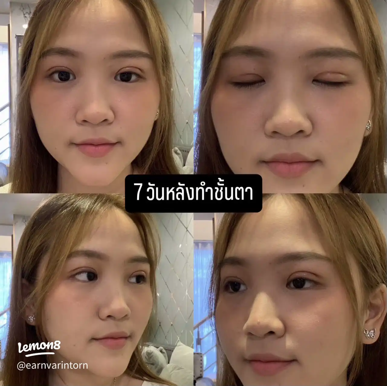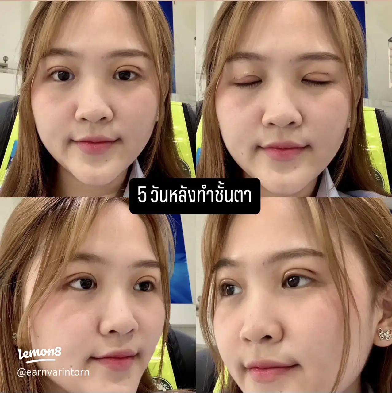 ฟีดแบ็คจากเพื่อนๆ เป็นไปในทางที่ดีมาก ทุกคนบอกว่าชั้นตาของเราดูเป็นธรรมชาติมาก ดูหวานขึ้น และคนใหม่ๆ ที่เพิ่งรู้จักก็คิดว่าเรามีชั้นตาสองชั้นมาตั้งแต่เกิดเลยค่ะ เทคนิคที่เราทำเป็นเทคนิคพิเศษของคลินิกที่เรียกว่า Scarlez-T ซึ่งช่วยลดรอยแผลและบวมช้ำได้อย่างมีประสิทธิภาพ